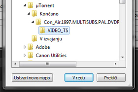 ... in z Raziskovalcem (Iskanje mape) poiščite film na disku, ter potrdite z gumbom V redu.