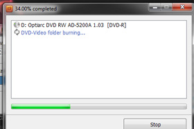 Počakajte, da se proces zapisovanja DVD filma uspešno zaključi. V primeru, da želite proces zapisovanja preklicati, pa kliknite na gumb Stop.