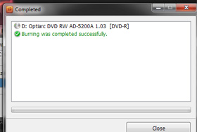Po uspešno zaključenem zapisovanju DVD filma, kliknite na gumb Close, da okno zaprete.
