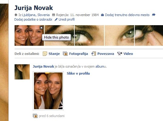Kliknite na Profil in nato odstranite objavo vaših novih slik (glej sliko), da bo vse lepše izgledalo.