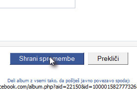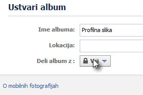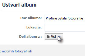 V polje Ime albuma vpišite poljubno ime in Deli album z določite Vsi. Vsi smo določili zato, da vas ob iskanju vidijo tudi ljudje, ki še niste sklenili prijateljstva. |