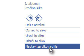 In ko se vam prikaže slika in njene lastnosti, kliknite spodaj desno na povezavo Nastavi za sliko profila.