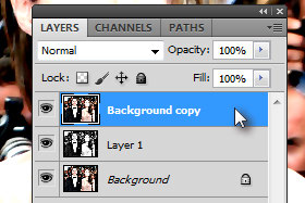 Pritisnite tipki Ctrl + J, da duplicirate layer in ga potem v paleti layerjev povlecite na vrh (glej sliko).