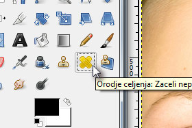 Spustite tipko Ctrl in s čopičem počasi prebarvajte prej kopiran del, da boste zapolnili del z mozoljem (glej sliko).