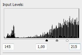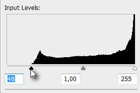 ![]() Pritisnite tipki Ctrl + L in premaknite črni drsnik (glej sliko) vse do začetka histograma (glej sliko). |