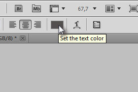 ![]() Izberite orodje Horizontal Type Tool (bližnjica je tipka T) in določite srednje temno sivo barvo (glej sliko).