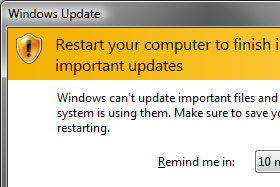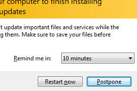 ![]() Ko se nam odpre pogovorno okno in če ne želimo sistem takoj ponovno zagnati, potem imamo možnost da izberemo, kdaj nas bo naslednjič opozoril. |