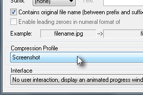 Potem se odpre okno, kjer določite Screenshot kot Compression Profile.