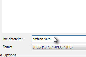 Ko se vam odpre okno za shranjevanje, v polje Ime datoteke vpišite poljubno ime in Format določite JPEG.