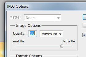 Quality določite 10 in kliknite na gumb OK. Med spreminjanem kvalitete, se spremembe na sliki v živo lahko spremljajo. |