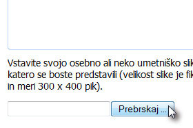 Kliknite na gumb Prebrskaj ... Kot vidite, navodila pravijo, da bo objavljena slika imela dimenzije 300 x 400 pik. |