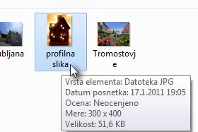 Med nalaganjem sistem poskrbi, da se slika kompresira in da spremeni dimenzije na 300 x 400 pik. Vendar pa lahko pride do popačenja in je bolje, da sliko prej pripravimo. |