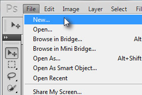 Odprite nato Adobe Photoshop in kliknite zgoraj na File ter izberite New...