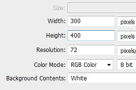 V polje Width vpišite 300 in v polje Height 400 pixels. Kliknite na gumb OK. |