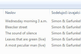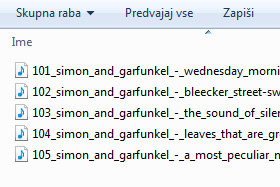 V mojem primeru imam od izvajalcev Simon & Garfunkel skladbe na računalniku grdo prikazane.