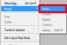 Ponovno se odpravimo v meni Select, tokrat malo nižje izberimo podmeni Modify in nato kliknimo možnost Border.
