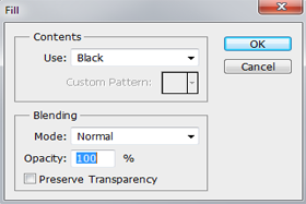 Sedaj pa pritisnemo kombinacijo tipk Shift + F4, oz se odpravimo v meni Edit in izberemo možnost Fill.