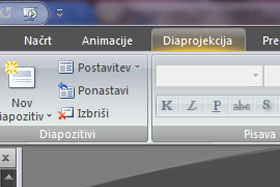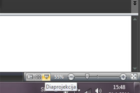 ![]() Pritisnite tipko F5 ali pa v desnem spodnjem kotu kliknite na gumb Diaprojekcija. |