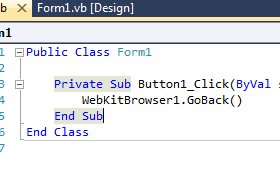 Dodajmo kodo, ki nas bo vrnila na prejšnjo spletno stran, ki je bila odprta: WebKitBrowser1.GoBack()