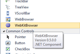 V Toolboxu poiščite WebKitBrowser in ga povlecite na glavno okno.