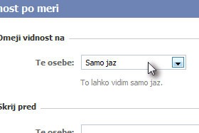 Potem pa pri polju Omeji vidnost nastavite Te osebe preko izbirnika na Samo jaz.