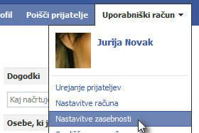Kliknite na Uporabniški račun in izberite Nastavitve zasebnosti.