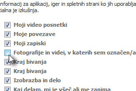 Odpre se novo okno, kjer Fotografije in videi, v katerih sem označen/a izklopite (glej sliko).