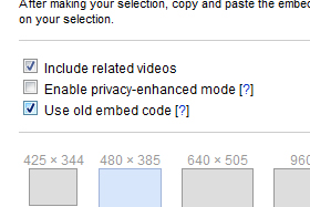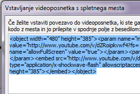 Zatem omogočite še Use old embed code in kopirajte kodo, ki se je zgenerirala v zgornjem polju.