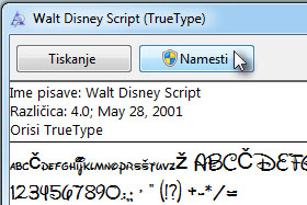 Odprl se nam je program, ki nam bo inštaliral pisavo. Le še klikniti moramo Namesti.