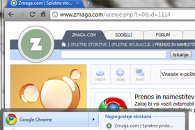 Stran iz obstoječega okna izskoči, vse vrstice brskalnika izginejo in ikono v opravilni vrstici zamenja ikona spletne strani. Na izbranih mestih, pa bi vas morale pričakati bližnjice.