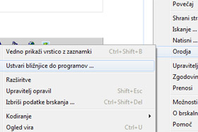 Zatem v meniju izberite Orodja in nato Ustvari bližnjice do programov ...