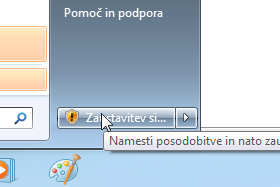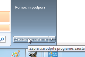 To preverite, če pogledate na gumb Zaustavitev sistema. Jaz imam, ampak ker se mi ne da čakati, bom raje uporabil drugo pot.