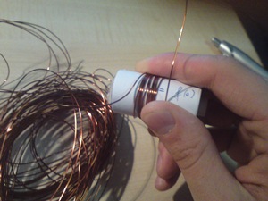 - 1x izolirana bakrena žica1x močen magnet valjaste oblike (priporočam neodym-magnet)