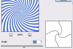 Kliknite na Filter, Distort in izberte Twirl. Angle določite 100 in potrdite na OK. |