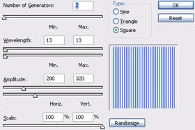 Wavelenght določite oba 13. Type določite Square. Amplitude 200 in 320, Scale pa oba 100%. Potrdite še spremembe na gumb OK. |