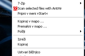 Če zdaj kliknete na katerokoli bližnjico ali mapo bi se Vam moralo poleg Pošlji videti tudi možnosti Kopiraj v mapo... in Premakni v mapo...