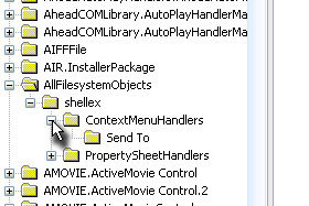 Kliknite na plus pri napisih: HKEY_CLASSES_ROOT/AllFilesystemobjects/ shellex/ContextMenuHandlers.