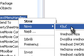 Z desnim miškinim gumbom spet kliknite na ContextMenuHandlers, nato Novo in Ključ.