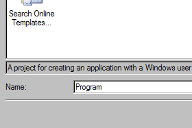 Najprej naredimo nov projekt in ga poimenujemo. V mojem primeru je to "Program".