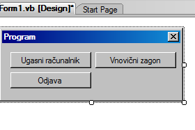 ![]() Potem dodamo programu 3 gumbe, "Ugasni računalnik", "Vnovični zagon" in "Odjava".