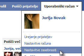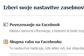 Prikaže se stran z nastavitvami vaše zasebnosti.
