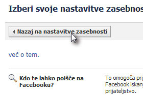 Kliknite na gumb Nazaj na nastavitve zasebnosti.