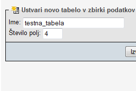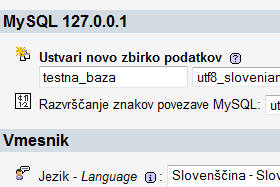 ![]() Pod opcijo Ustvari novo zbirko podatkov bomo ustvarili novo podatkovno bazo z imenom testna_baza. |
