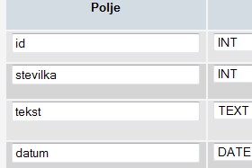 ![]() Za imena in tipe polj določimo naslednja imena: |