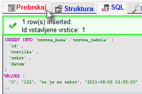 ![]() Sedaj bomo v našo tabelo vstavili nekaj podatkov. |