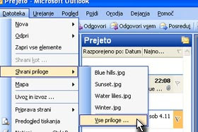 Z desnim miškinim gumbom kliknite na neko prilogo in izberite Shrani kot ...