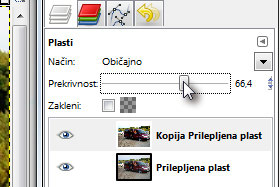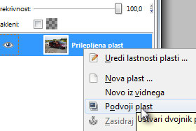 ![]() Sedaj kliknite z desnim miškinim gumbom na plast fotografije in izberite Podvoji plast (glej sliko). |