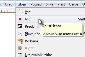 Kliknite na Izberi in nato Nič, da boste selekcijo še pobrisali. |