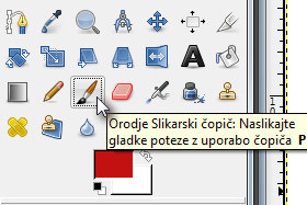 Jaz sem izbral čopič, ki ima bolj mehke robove. Nato sem določil tudi rdečo barvo. |
