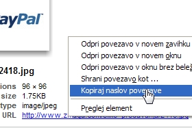 Pod sliko so napisani podatki. Z desnim miškinim gumbom kliknite na naslov in izberite Kopiraj naslov povezave.